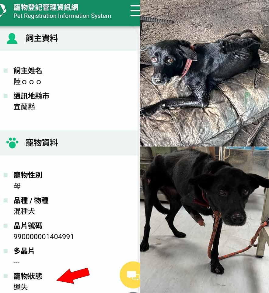 黑狗有登記飼主的晶片