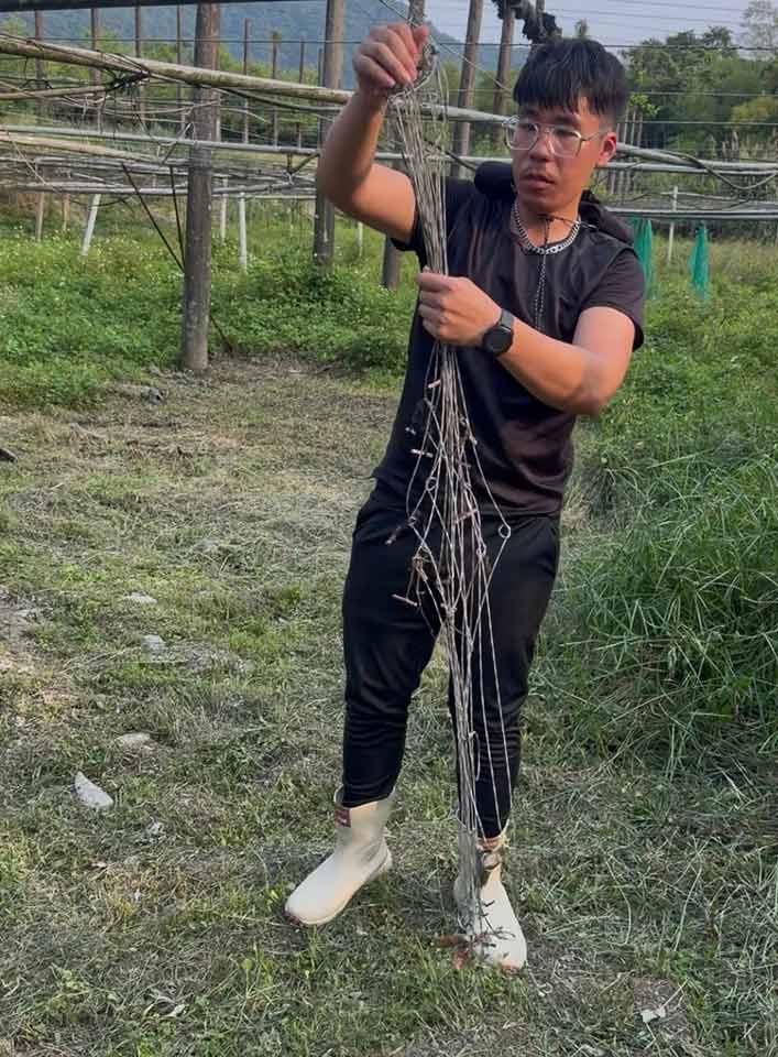 下午我們一行人連爬帶滑上山解開了15門陷阱鋼索