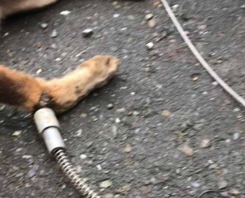 解開中鋼索的山羌與狗狗