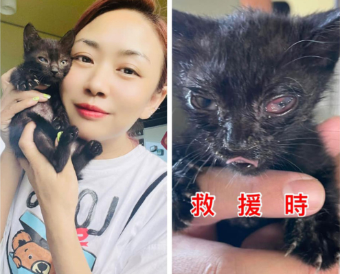 救援時的狀況~得了貓流感、眼睛也交叉感染