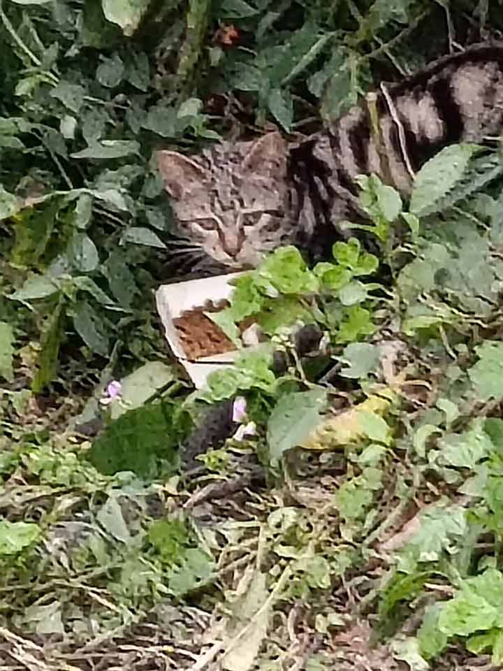 重傷貓咪沒有出現 應該痛苦的躺在草叢裡 失去生命了