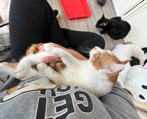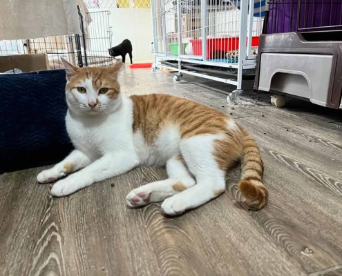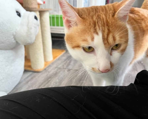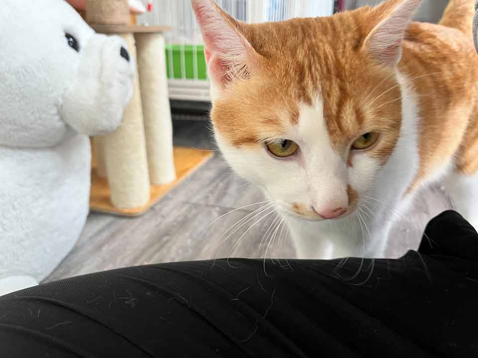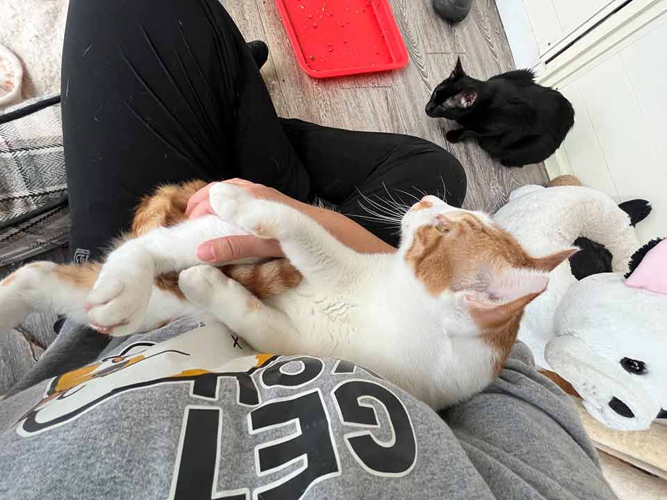 特別喜好習慣:聽到有人呼喊牠的名字時會開心的跑過去撒嬌,而且隨便怎麼撸都不太會反抗反而還會發出舒服的呼嚕聲,更重要的是剪指甲時不會掙扎,非常適合養貓新手的天使貓貓!但即便家裡已經有貓也不用太擔心,柿子在館內跟其他貓咪們也都相處得很融洽呦~