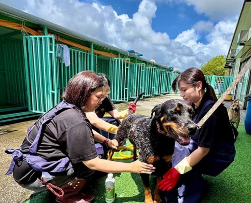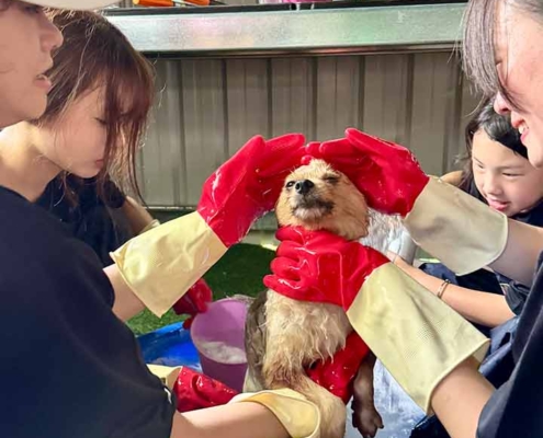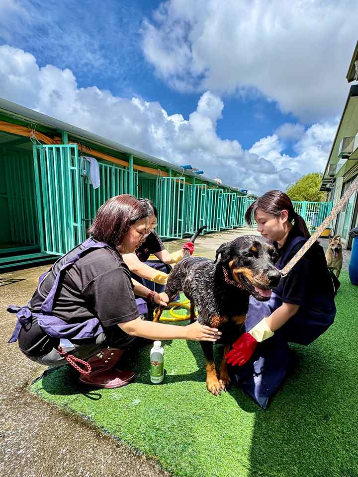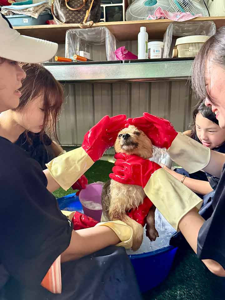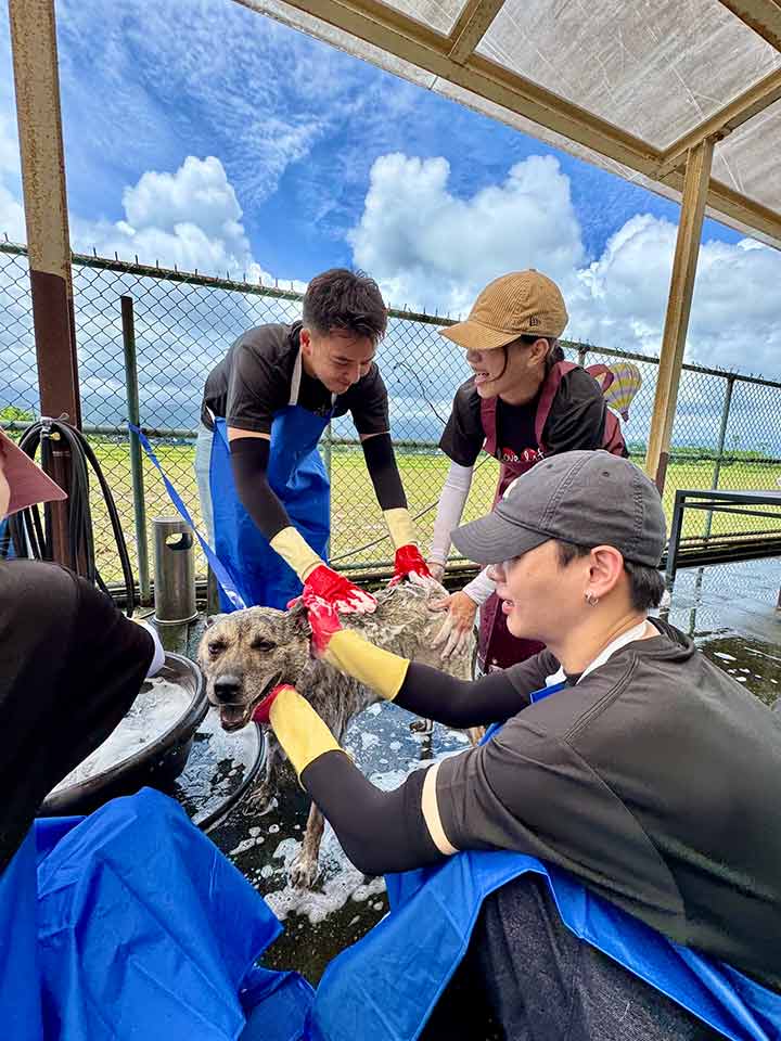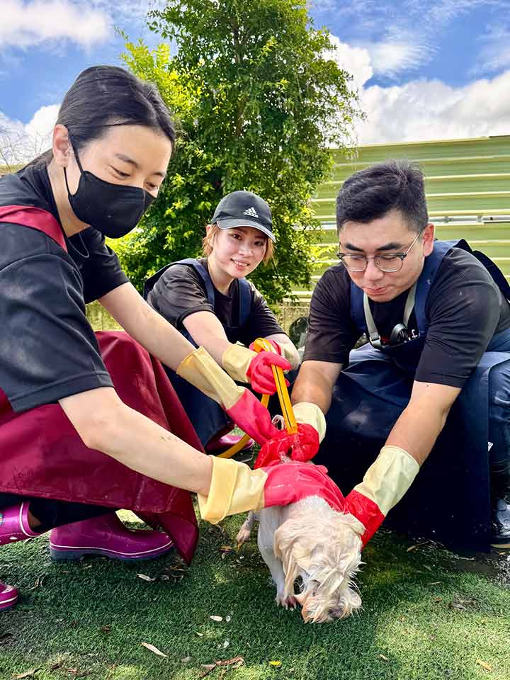 今年,品臻再次捐款二十萬元,並再度帶領同仁與親友到園區擔任志工,替孩子們洗澡,讓毛孩在清爽中笑著跑起來。