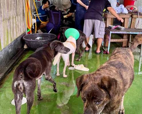 你能想像嗎?在今天颱風天本該下雨的宜蘭,卻出現陽光燦爛的天空,一群人揮汗如雨替孩子們洗澡,今天,品臻創下一天洗完81隻狗狗的紀錄,洗過澡後,每一聲快樂的吠叫,都是對他們最好的回應。