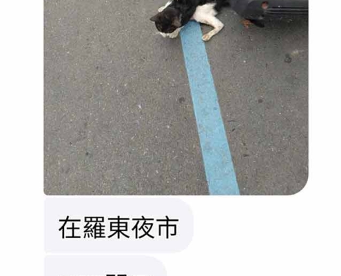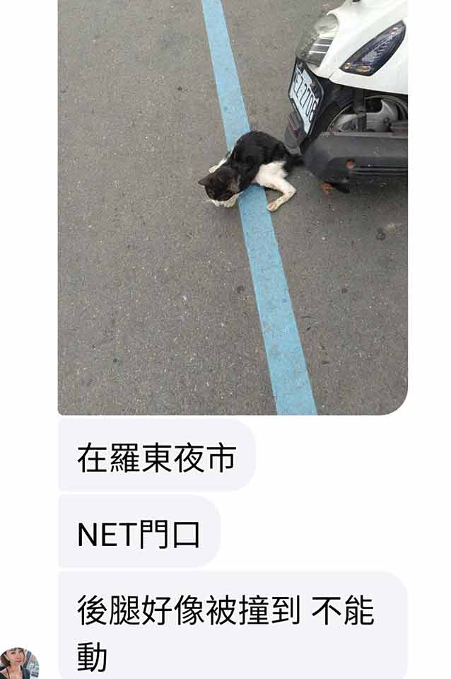 這隻浪貓被車撞傷 我們接獲通報後 奔往現場救援