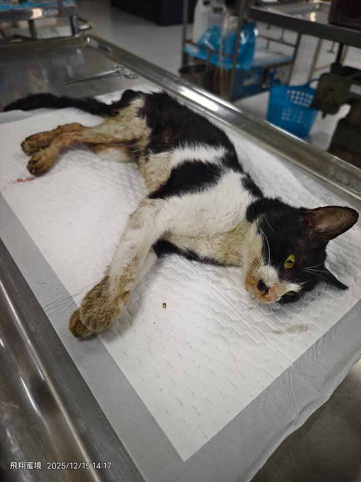貓咪傷勢嚴重 上了手術台 睜開雙眼看了我們一眼 嚥下最後一口氣 結束了牠悲慘的流浪生命
