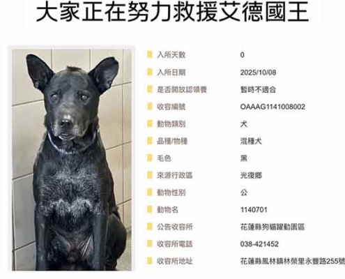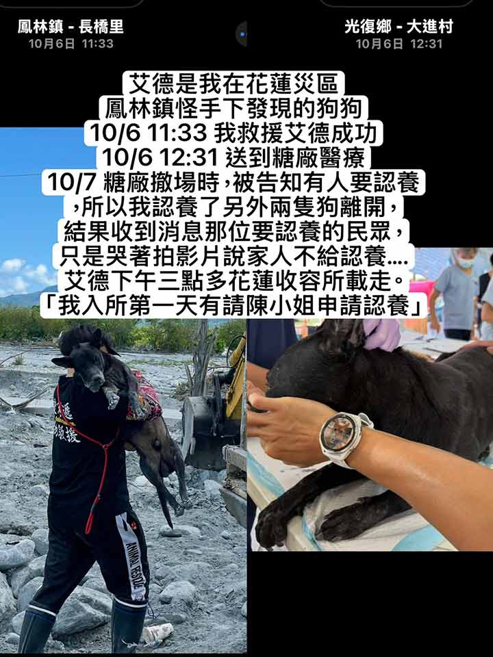 花蓮災區 最後一隻被送入收容所的黑狗