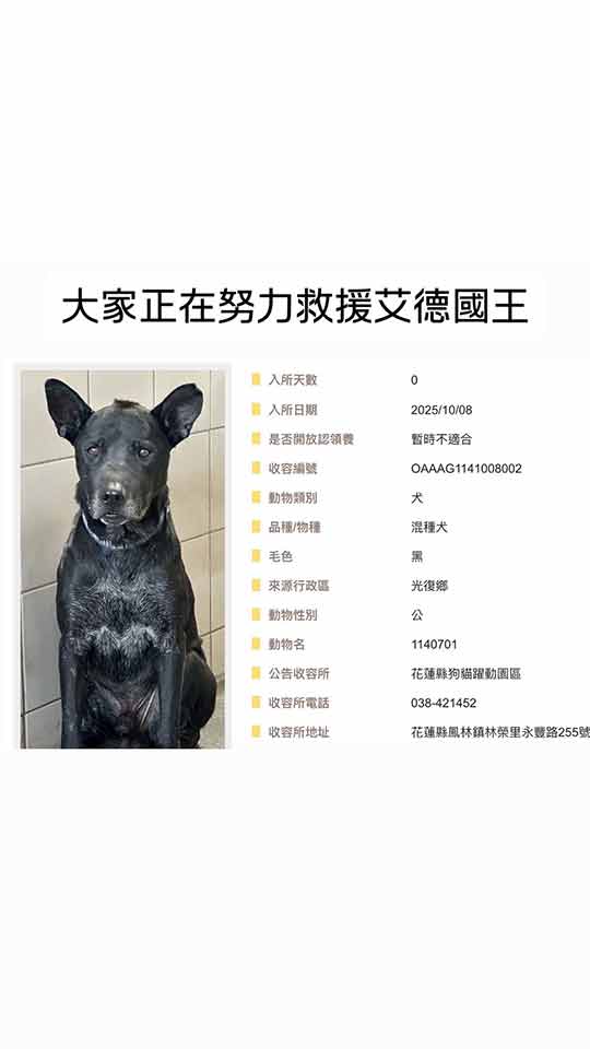 花蓮災區 最後一隻被送入收容所的黑狗 愛德 昨天我們順利領養出來