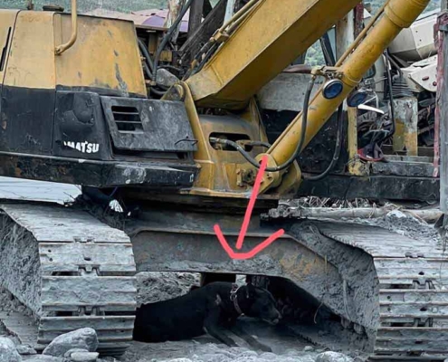 『唉 ~ 災區的毛孩真的很可憐 在泥漿大水裡翻滾 應該居多都受到病毒感染』