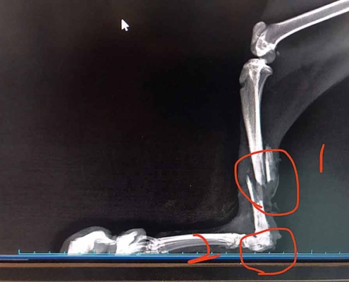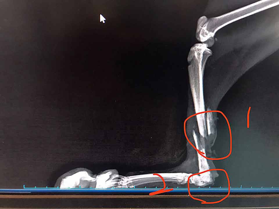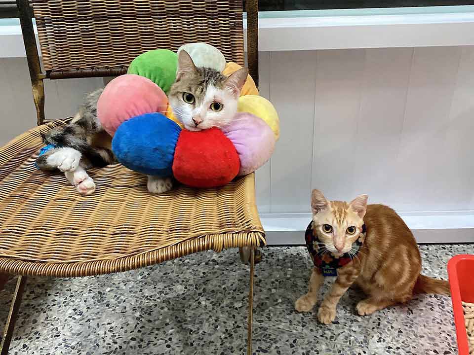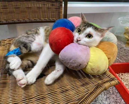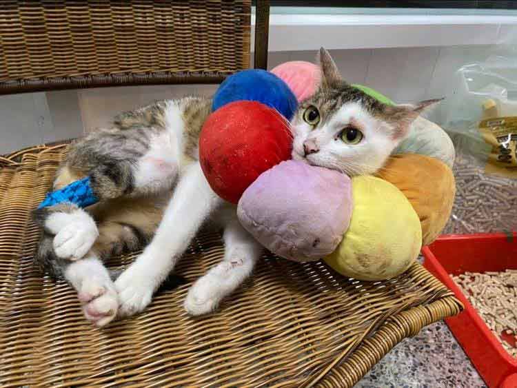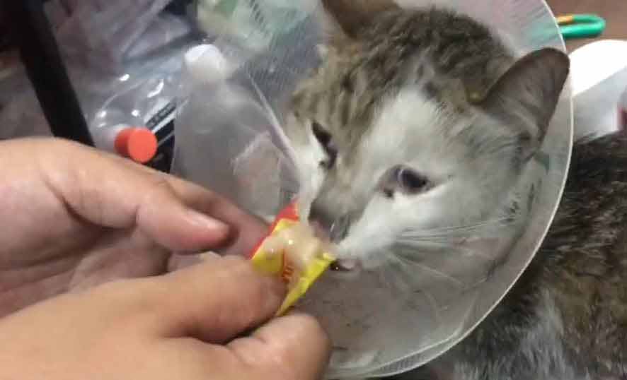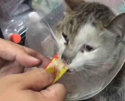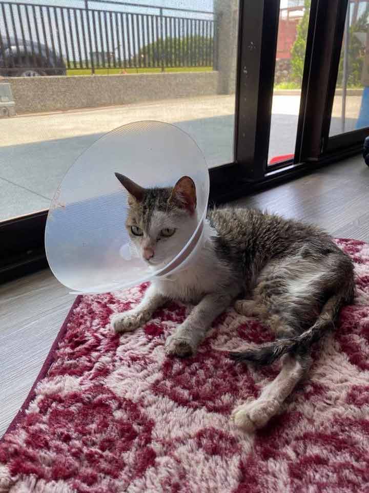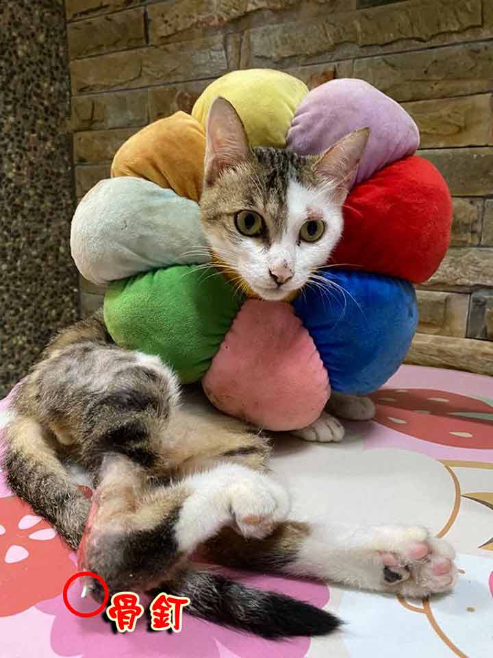 貓兒雖然飢餓又重傷,卻超級親人!我們緊急送醫,打針吃藥、打骨釘、住院…… 一週後,愛生知道園區經濟拮据,認為我們有照護的能力,為了幫助節約,就讓我們帶回照顧了!