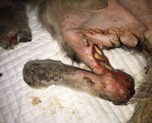 看著貓兒慵懶的模樣,可知他一個多月前,乾瘦無力,骨折、肌肉糜爛,卻被庸醫要求沒有經驗的救援人自行帶回照顧,等養胖一點再過來……!