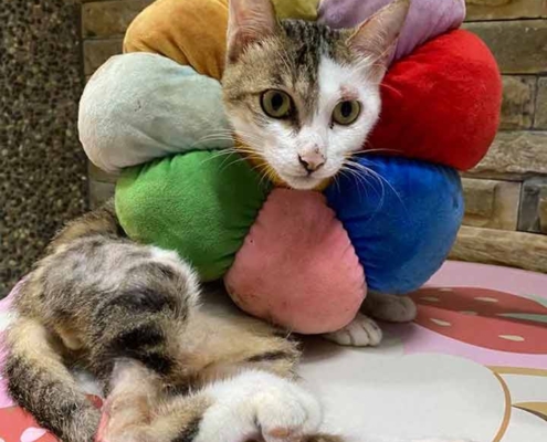 莉莉姐一肩擔起了照顧的責任,但是大家不知道,莉莉姐當初在日本的時候,是非常怕貓的喔!