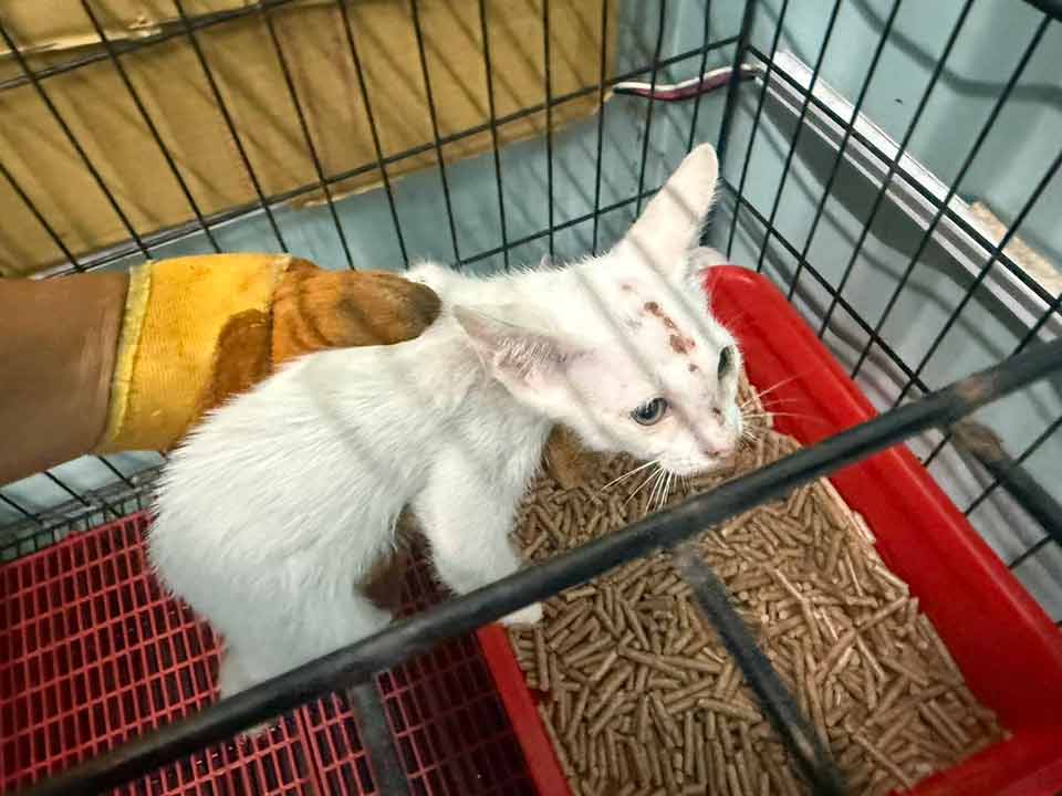 昨日 誘捕到4隻成貓 2隻受傷的小白幼貓