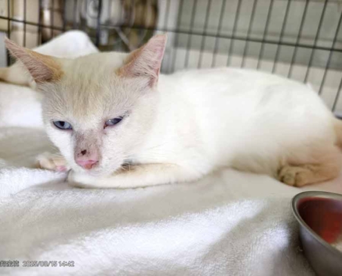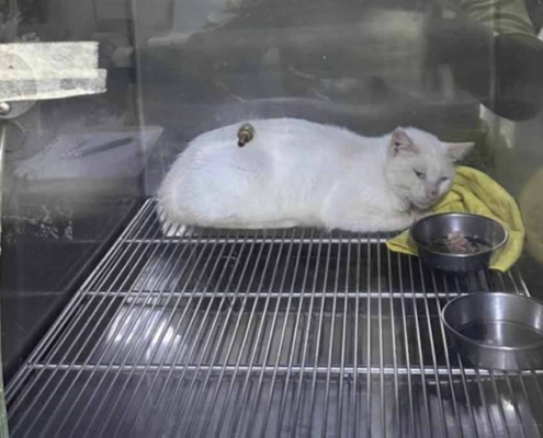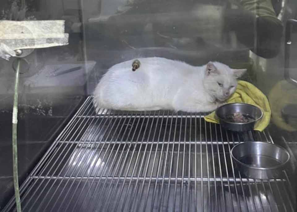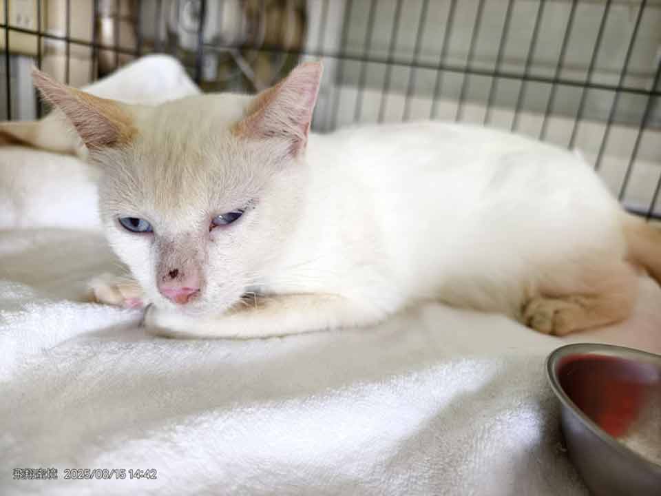 10天前南澳救援的親人白貓 也檢驗出腹膜炎 在集賢愛生治療中